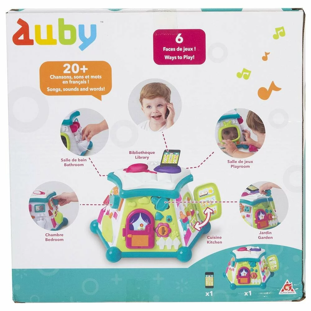 L’enfant s’éveille grâce aux activités sonores et lumineuses autour des différents moments de la journée (6 faces) : je joue, je fais ma toilette, je me couche, le repas, le jardin, je me détends. Avec plus de 20 chansons, sons et mots.