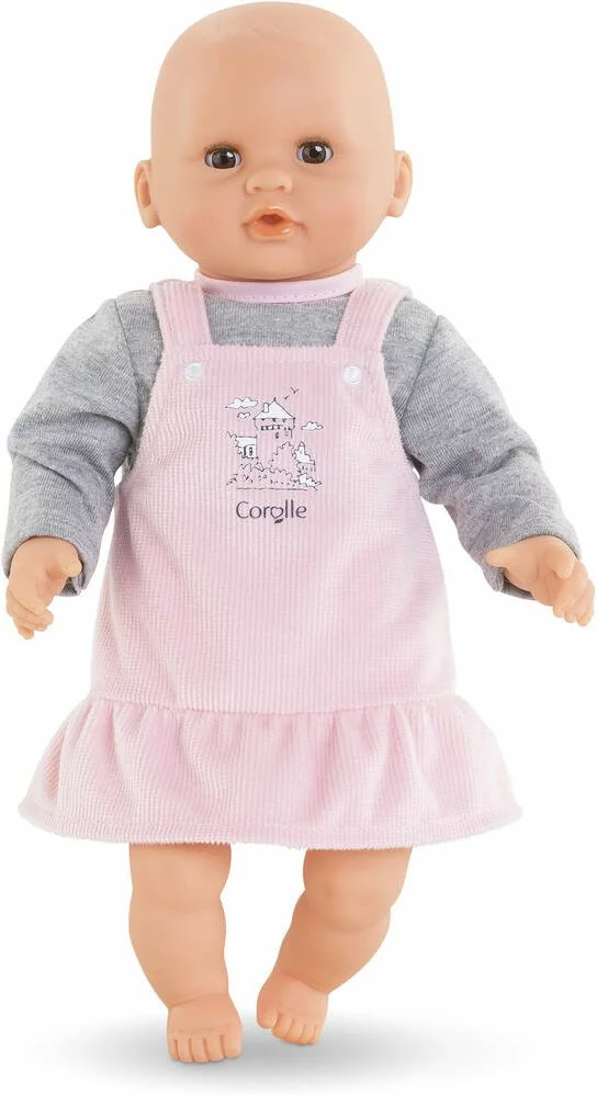 Intemporelle; la Robe Bords de Loire de couleur grise et rose ira à ravir aux petits poupons de 30cm mon premier poupon Corolle.