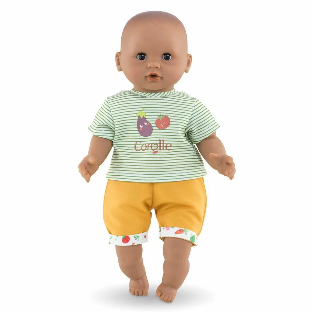 Le T-Shirt & Bermuda La Fête du Potager est l’ensemble dans l’air du temps pour les petits poupons de 30 cm mon premier poupon Corolle. Confectionné dans des matières douces et résistantes, il est facile à enfiler grâce aux bandes auto-agrippantes, adaptées à la dextérité des petites mains.