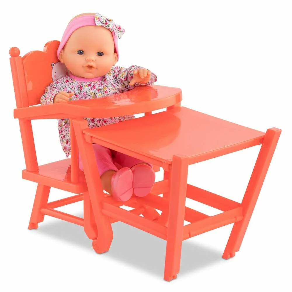 À table ! La Chaise Haute est adaptée aux grands poupons de 36 à 42cm Corolle. Elle est 2 en 1 : elle se place en position haute comme celle d’un vrai bébé ou en position basse pour faciliter le jeu assis. Sur sa petite tablette, on peut poser le repas de son grand poupon. Plus que jamais, les enfants vont adorer donner à manger à leur grand poupon !