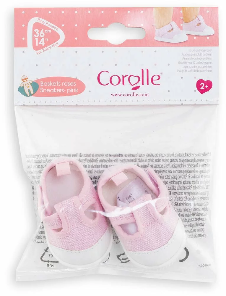 Baskets roses pour grand poupon de 36cm. Les grands poupons disposent d’une collection variée de vêtements et d’accessoires dans la gamme mon grand poupon Corolle pour jouer et faire comme les grands. Dès 2 ans.