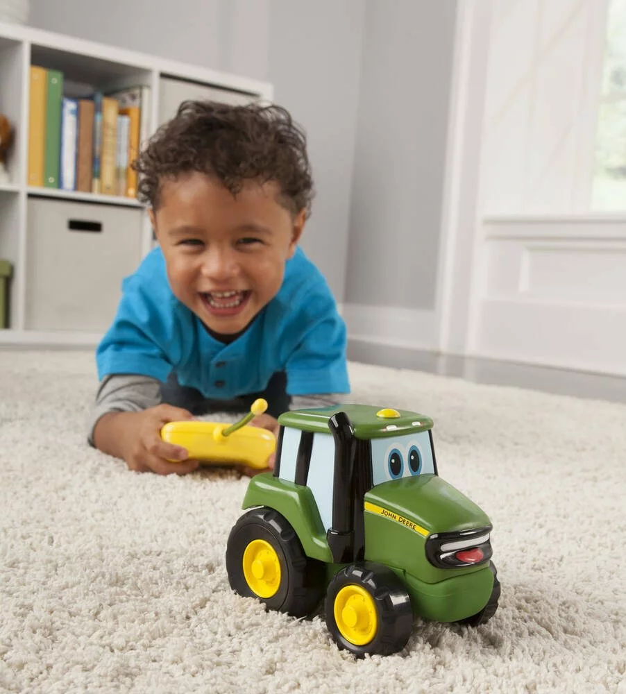 Véhicule en plastique souple. Le tracteur peut fonctionner de manière radiocommandé ou manuellement (roues libres). Facile à utiliser grâce la télécommande deux directions : marche avant et demi-tour. Antenne souple flexible. Dispositif d’arrêt automatique
