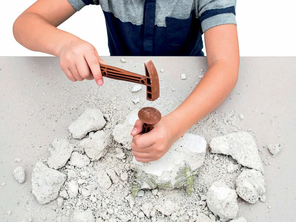 Un coffret de paléontologue pour se plonger dans la Préhistoire et découvrir des créatures légendaires comme le T-Rex, le Vélociraptor et le Tricératops ! Assemble le squelette du T-Rex géant et déterre les restes fossilisés du Vélociraptor et du Tricératops ! Tu pourras recréer de formidables combats entre proies et prédateurs. Un marteau et un burin sont inclus dans le coffret pour creuser plus facilement !