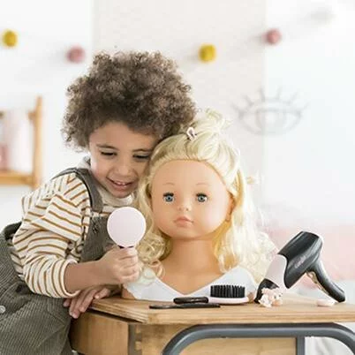 Le Coffret Coiffure dispose de 14 accessoires réalistes (1 sèche-cheveux; 1 brosse; 1 miroir à main; 1 peigne; 2 grandes pinces à griffes; 3 petites pinces à griffes; 2 pinces plates à cheveux et 3 chouchous.) pour créer de nombreuses coiffures ! Le sèche-cheveux électronique a tout d’un vrai ! L’embout est amovible – Il fait du bruit – Il souffle de l’air (à température ambiante) – Le Coffret Coiffure Corolle est idéal pour compléter la Tête à Coiffer Princesse des Fleurs de Corolle et passer des heures à imaginer toujours plus de nouvelles coiffures !