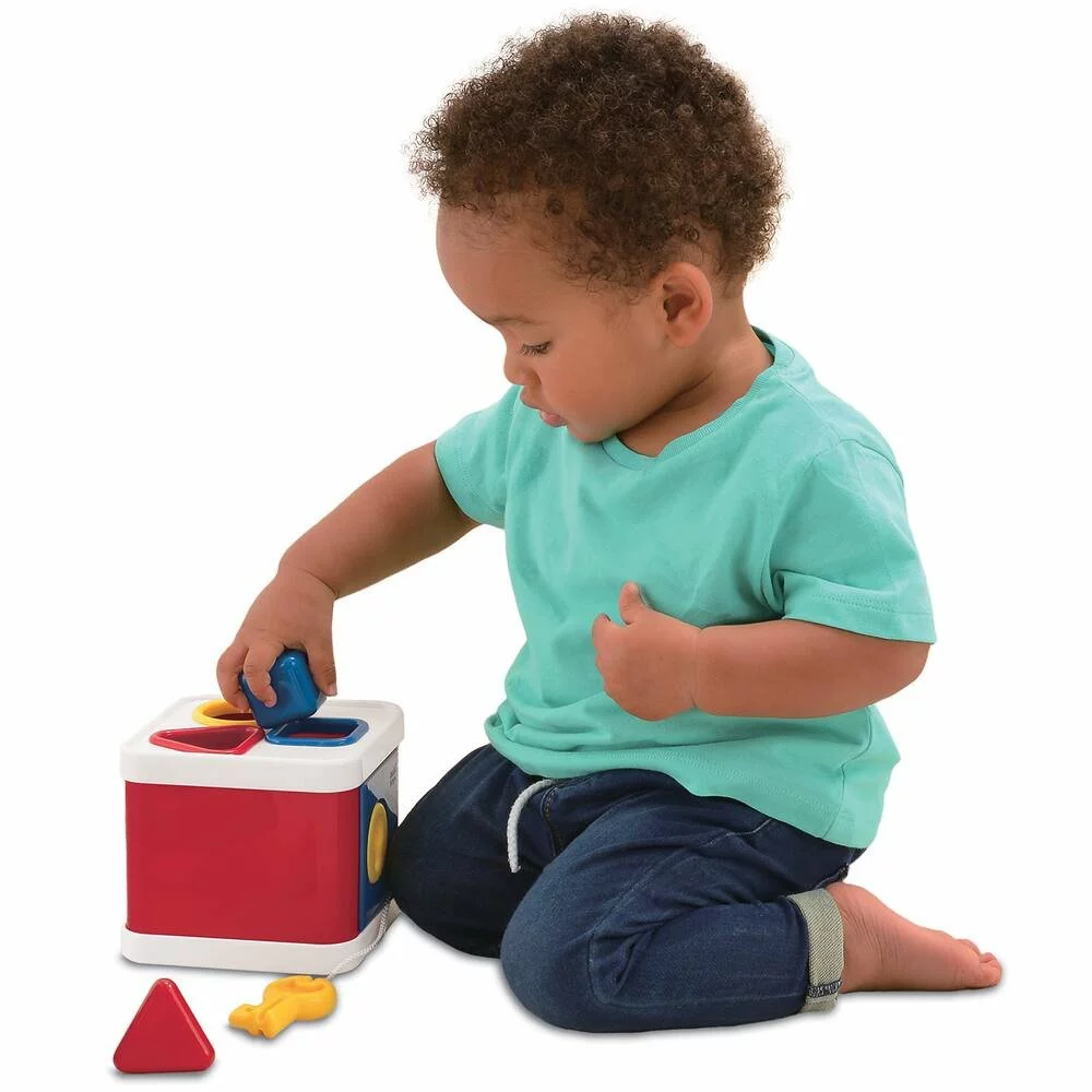 A partir de 12 mois, les tout-petits deviennent beaucoup plus curieux et aventureux. Ils adorent ranger, cacher et empiler les choses. Lors de cette phase, les bambins reconnaissent les formes et les couleurs et les sons familiers. Ambi toys propose des boîtes à formes ainsi que des jeux à empiler et à tirer. Montrez-lui comment faire les choses et il les fera très vite tout seul ! Cette solide boîte verrouillable est dotée de deux séries de blocs de formes différentes pour jouer sur l’association des couleurs et des formes. La serrure fait un bruit de roue à cliquet quand la clé géante inamovible tourne.