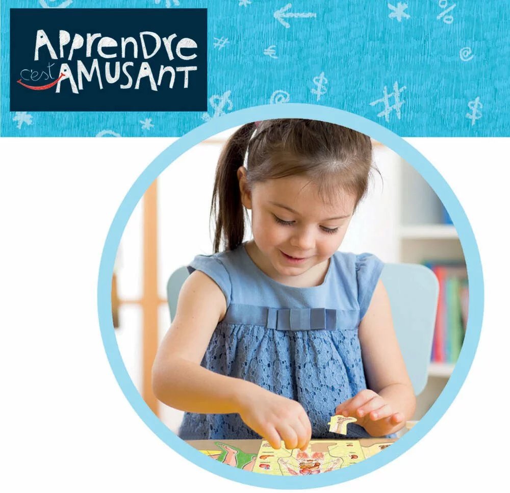 Avec ce jeu amusant les enfants apprendront les différentes parties du corps humain de façon amusante. Sur la silhouette d’un petit garçon ou d’une petite fille, ils pourront insérer les principales parties du corps, du squelette et les organes. Les enfants apprendront à nommer les parties du corps, situer les différents organes, identifier les os principaux. Avec 99 pièces pour former 4 puzzles (garçon, fille, squelette et organes), 1 cadre avec les parties du corps, instructions.