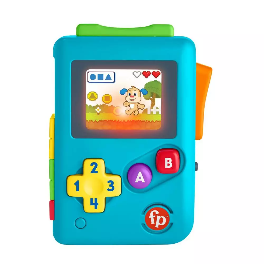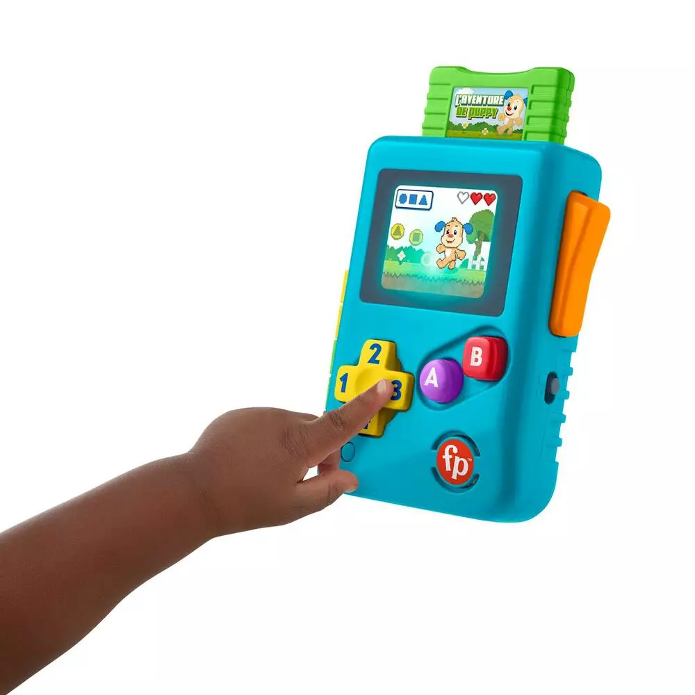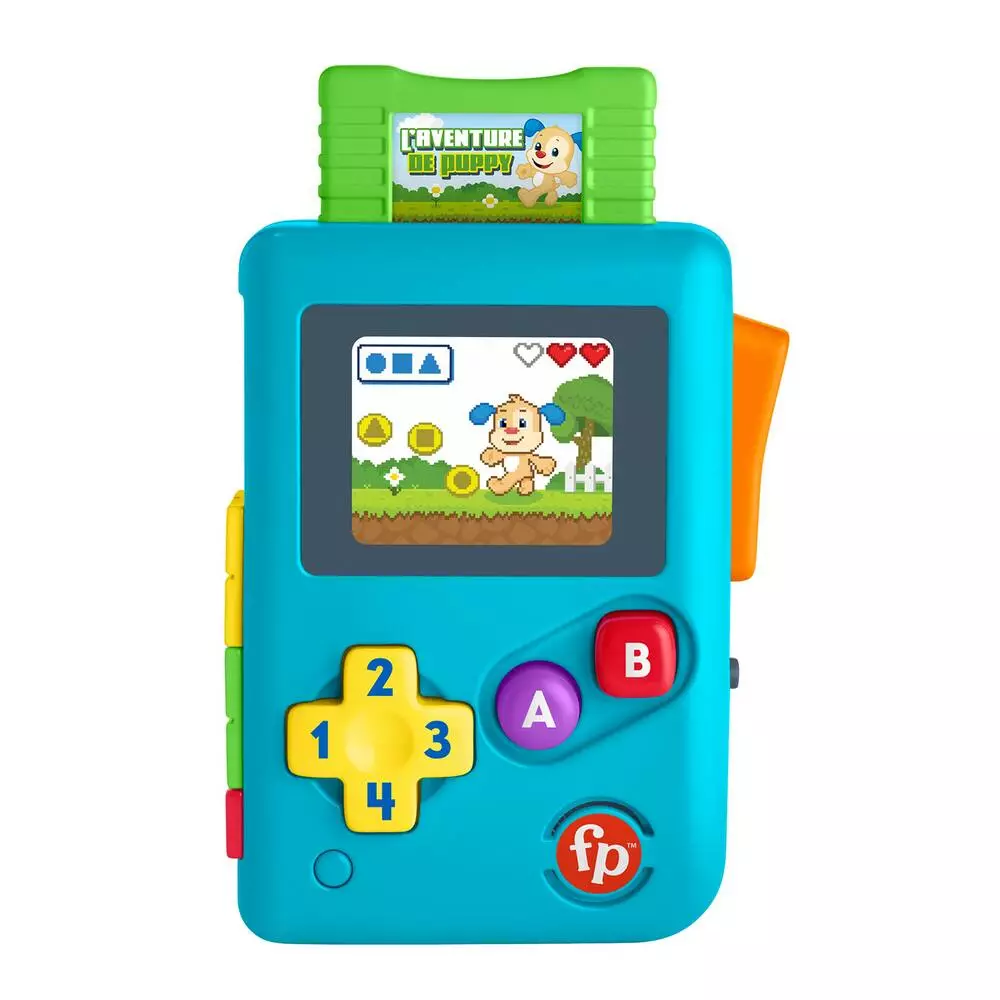 Initiez bĂ©bĂ© aux jeux vidĂ©o d’Ă©poque avec Ma première console de jeu Rires et Éveil de Fisher-Price. Elle tient dans les mains de bĂ©bĂ© et ressemble Ă s’y mĂ©prendre Ă une vraie console avec sa commande directionnelle et ses boutons A et B, sa fausse cartouche de jeu et son Ă©cran qui s’allume. Quand bĂ©bĂ© appuie sur les boutons, il entend des chansons, des sons et des phrases rigolotes qui l’initient aux directions, aux couleurs, aux chiffres et aux formes.