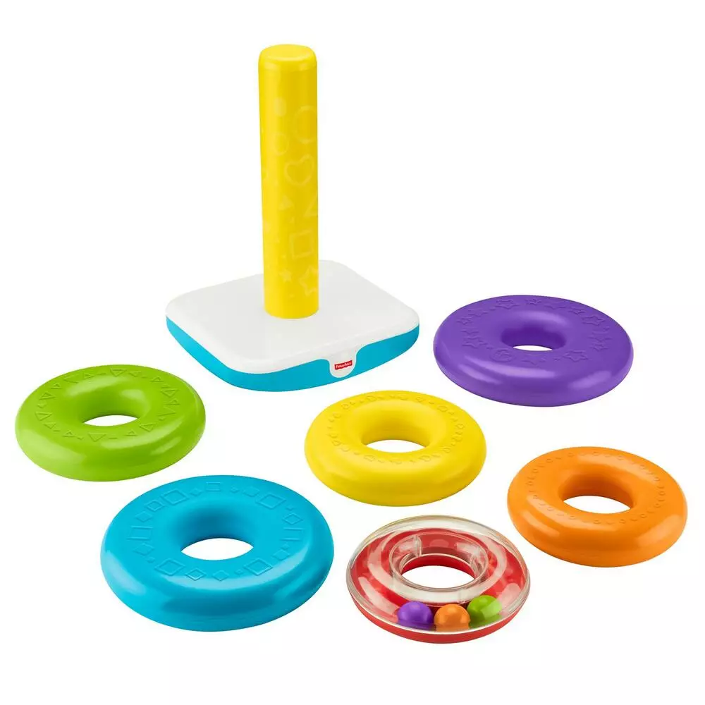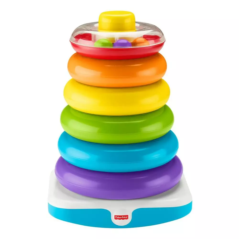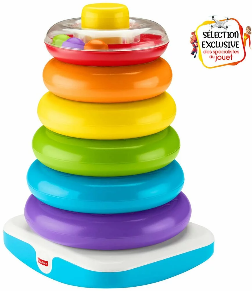 Voici la pyramide géante Fisher-Price. Un jouet classique Fisher-Price en version géante. Favorise la coordination des gestes et l’apprentissage des couleurs grâce aux 6 anneaux colorés à empiler. L’anneau le plus petit contient des billes et peut servir de hochet.