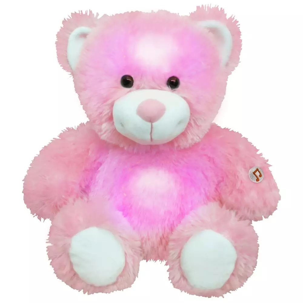 Une peluche toute douce qui s’illumine de toutes les couleurs de l’arc en ciel quand on lui appuie sur la patte. 3 berceuses incluses. Effets sonores et lumineux.