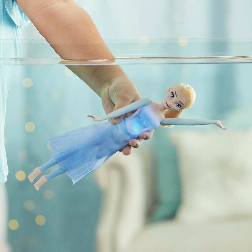 La poupĂ©e reprĂ©sente Elsa Ă la fin du film La Reine des Neiges 2 lorsqu’elle se rend Ă Ahtohallan par la mer. La poupĂ©e Elsa possède une tenue bleue sombre avec un corset moulĂ© et une jupe en tissu. Elle a 5 points d’articulation. Le corset s’allume et des effets pailletĂ©s apparaissent sur la jupe de la poupĂ©e lorsqu’elle est sous l’eau.