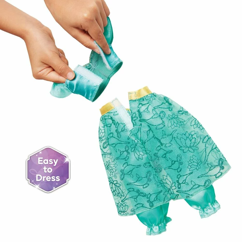 Poupée Jasmine de 38 cm. La poupée a des yeux avec des paillettes intégrées, une coiffure de princesse avec une tiare, une tenue à motif avec paillettes et détachable par scratch dans le dos ainsi qu’une paire de chaussures souples pouvant être enlevées. Contenu : 1 poupée, 1 paire de chaussures, 1 tenue avec motifs. En plastique. Collectionne toutes les poupées 38 cm des Disney Princesses (références vendues séparément) ! Licence : Disney Princesses.