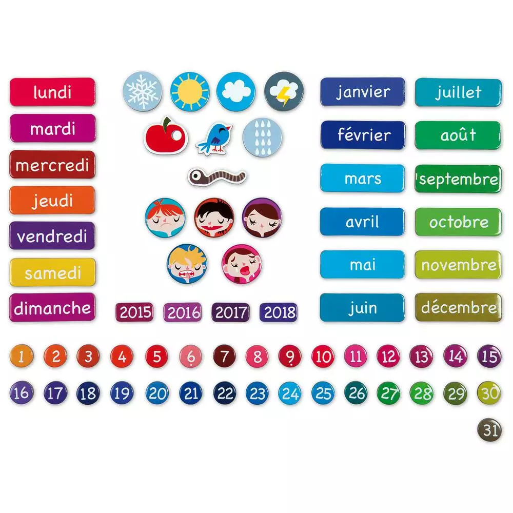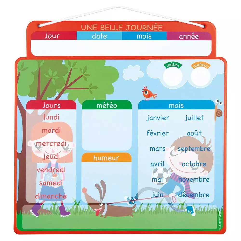 Pour les enfants et les parents désireux de maîtriser le temps ! Composé d’un tableau à suspendre et de 71 magnets pour indiquer la date (jour / mois / année), la météo et l’humeur du moment, chaque jour, tout au long de l’année ! Cet agenda accompagnera votre enfant pour lui apprendre à acquérir la notion du temps tout en devenant autonome.