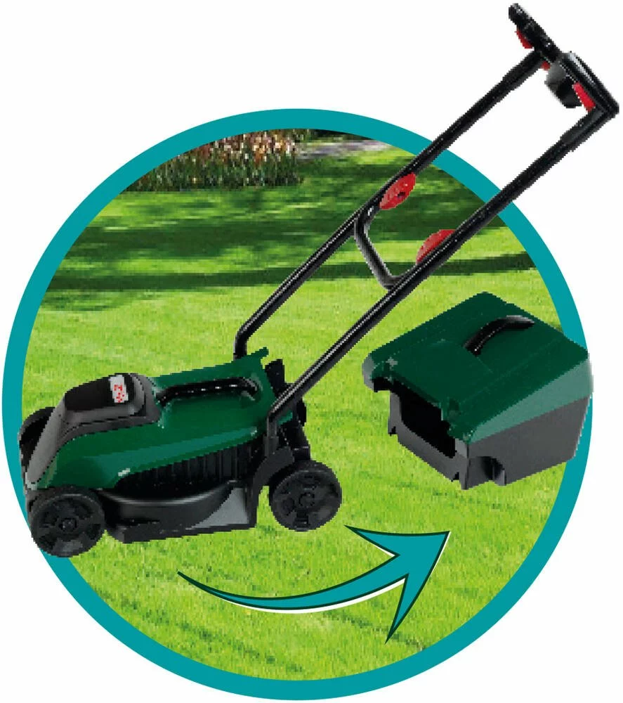 Tondeuse Bosch avec bac de récupération amovible – Roues avec bruitage de clic mécanique –