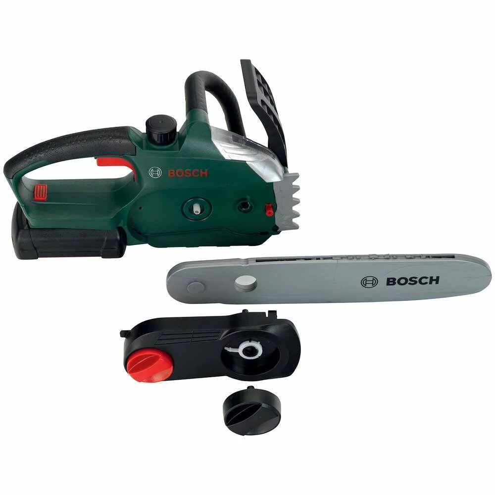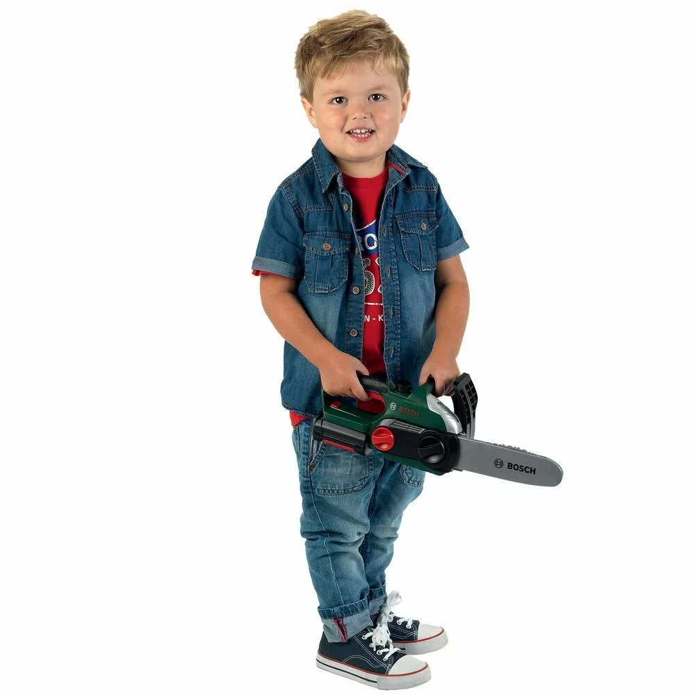 Cette tronçonneuse est une réplique très fidèle du modèle original utilisé par les adultes. Possède des fonctions très réalistes, adaptées aux enfants : bruitage, fonction lumineuse et chaîne tournante (autour du guide). Avec cette belle tronçonneuse BOSCH, tu deviendras le meilleur bûcheron !