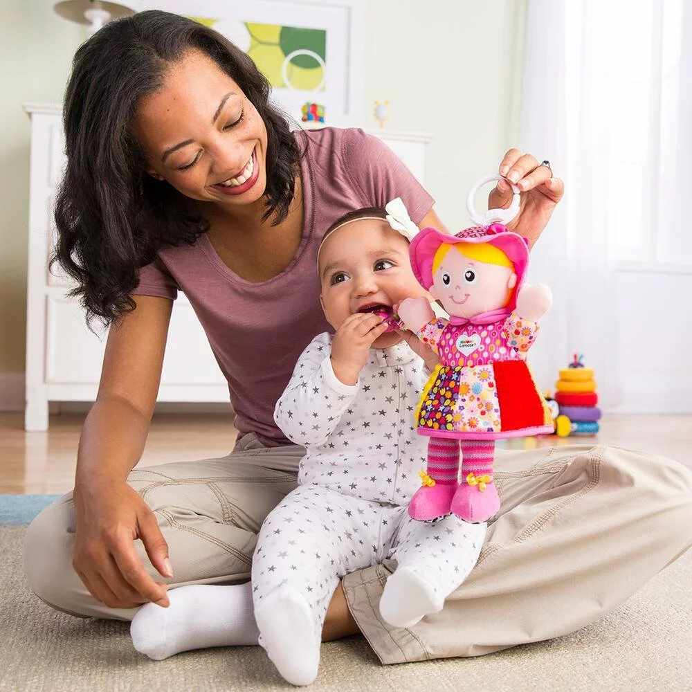 Poupée avec de multiples activités : bruit de papier froissé, pendentif fleur, pouêt-pouêt… Les différentes matières et textures incitent à la manipulation et développent la micro-motricité. Avec attache Clip’n Go pour accompagner bébé partout.
