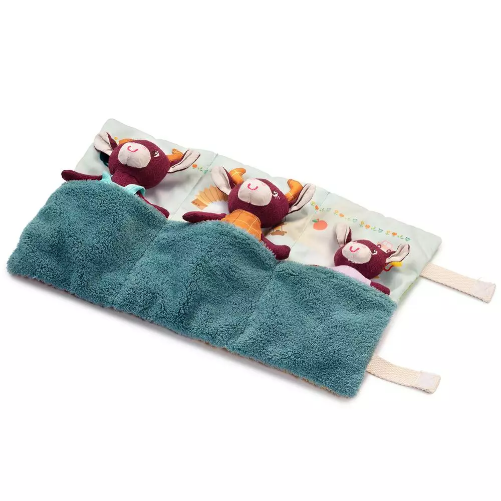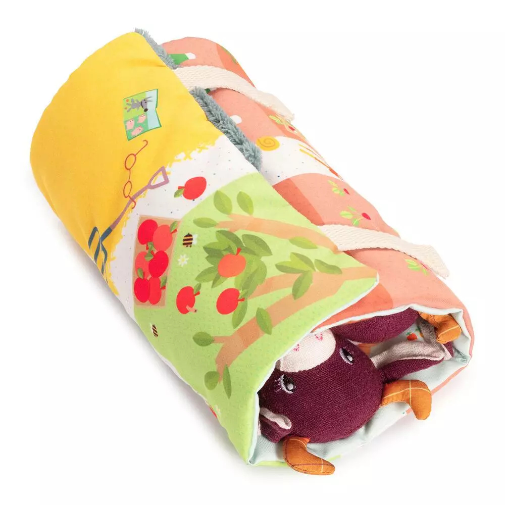 Quelle jolie famille de vachettes. Après une journée à la ferme, maman, papa et bébé Rosalie vont bien dormir dans leur petit lit douillet. Mais n’oubliez pas de les déshabiller avant de les mettre au lit ! Ce petit tapis et ses habitants s’emportent facilement partout. Ainsi, grâce à ses personnages attendrissants, votre bambin peut vivre de belles aventures partout.