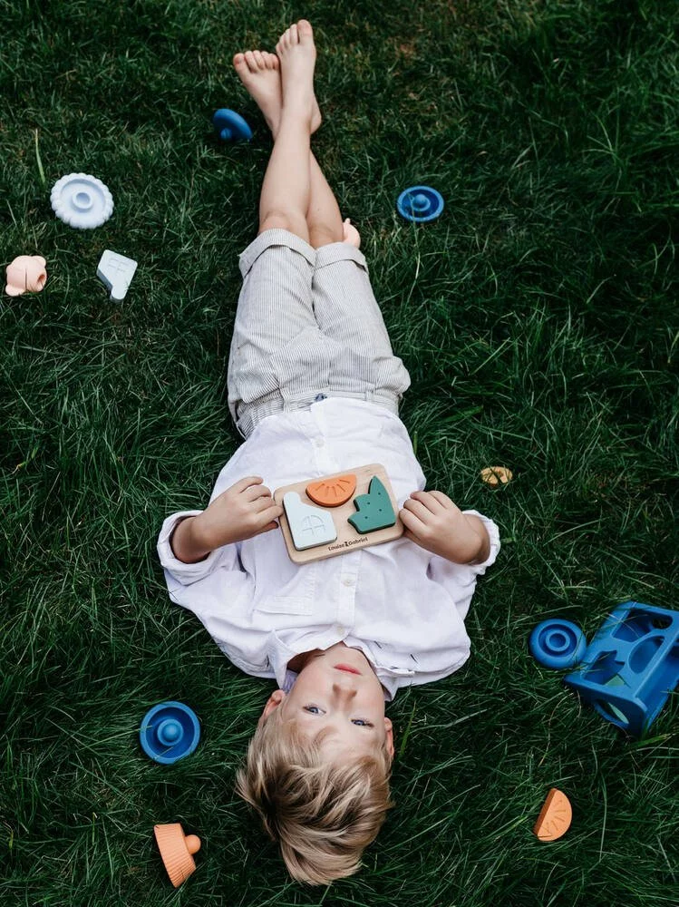 Puzzle en bambou avec ses 3 pièces en silicone (FDA et LFGB standards). Il développe la psychomotricité fine grâce à ses formes simples, faciles à prendre en main. La base en bambou massif est recouverte d’un vernis écologique à base d’eau. Les formes, en relief, facilitent la prise en main des enfants. Les pièces sont composées de silicone bénéficiant d’un grade alimentaire. Elles peuvent donc être mâchouillées sans danger pour les enfants et soulager leurs gencives. Contenu : 1 base et 3 pièces. Les pièces passent au lave-vaisselle pour un entretien facilité. Conçu avec une psychomotricienne. Instructions sur la boîte.