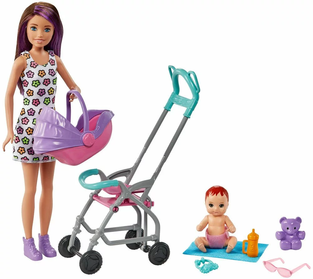 Le coffret inclut Skipper et un bébé, une poussette à rebonds et cinq accessoires sur le thème du maternage pour compléter le jeu avec les POUPEEs.