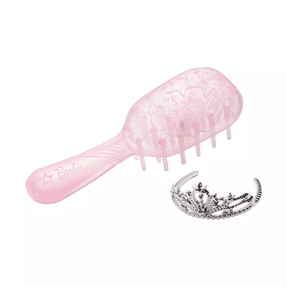 La princesse Barbie est vêtue d’une longue robe pailletée couleur lavande dont le jupon s’évase en éventail par simple pression. Un florilège de motifs aux couleurs froides et nuancées est ainsi dévoilé pour évoquer la magie de l’hiver.