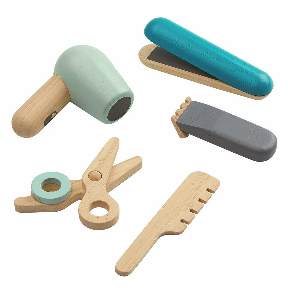 Faites semblant d’être un coiffeur avec ce bel ensemble! Comprend des ciseaux, un sèche-cheveux, un peigne, un fer à lisser, une tondeuse à cheveux et une trousse de rangement. Les enfants auront plaisir à créer des coiffures sur eux-mêmes, les membres de leur famille, leurs amis ou leurs poupées.