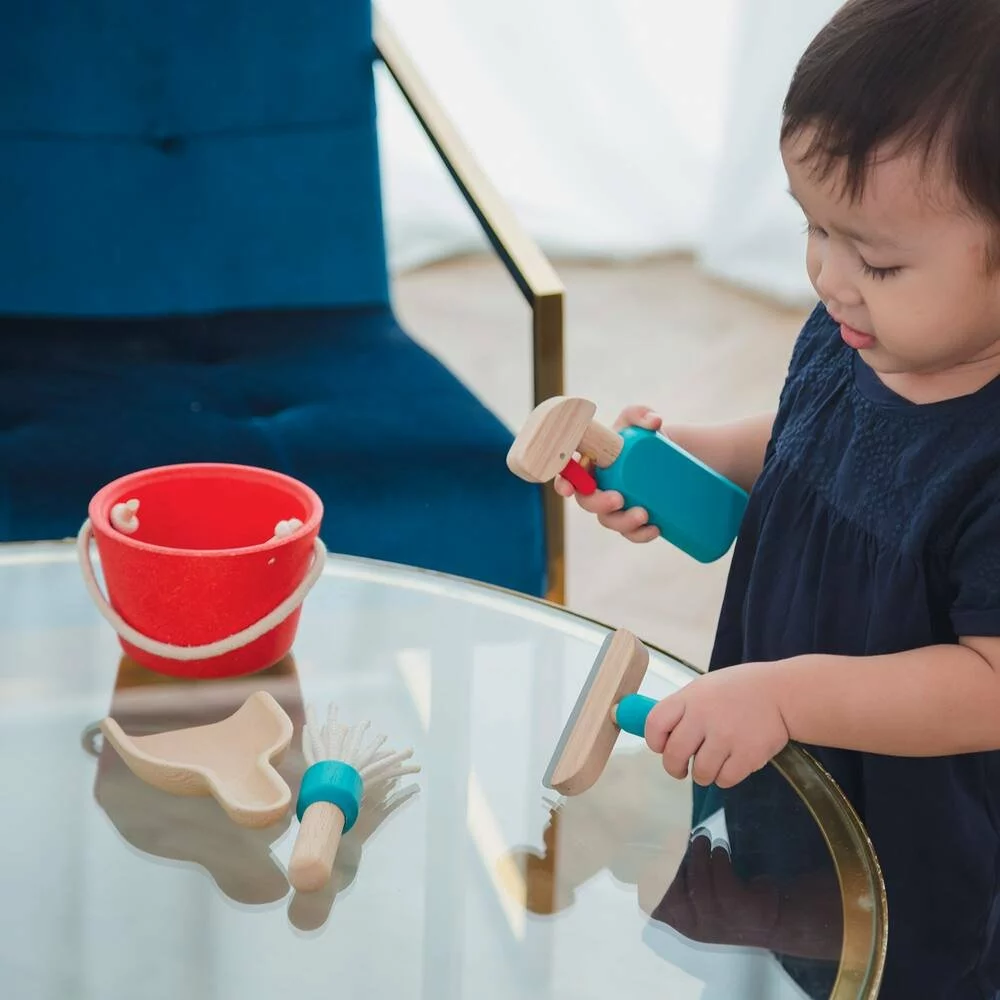 Profitez de cet ensemble de nettoyage avec vos enfants et faites équipe avec eux pour comprendre l’importance de garder un espace propre! L’ensemble comprend un seau, un vaporisateur, une raclette, un balai et une pelle pour la poussière. Apprendre la propreté.
