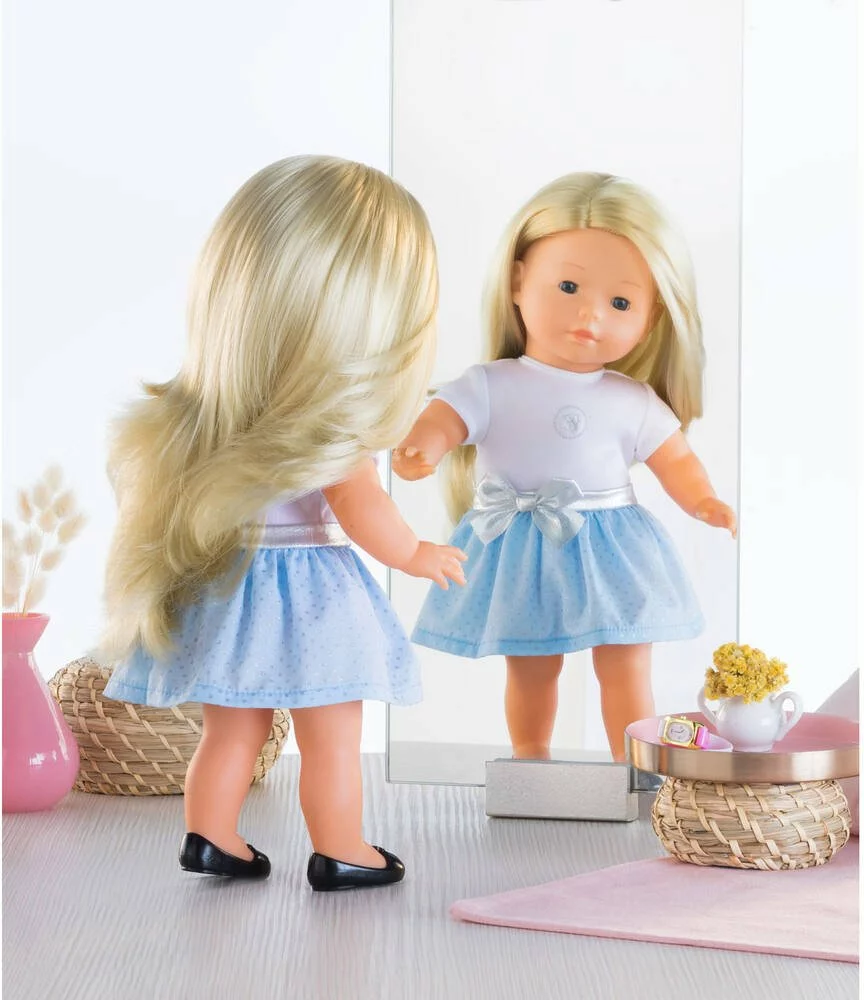 Poupée à habiller de 36 cm au corps souple « effet » sous-vêtement avec de longs cheveux faciles à coiffer. Personnalisez Paloma avec près de 100 vêtements et accessoires. Son visage; ses bras et ses jambes; à la délicate senteur de vanille; sont en vinyle doux au toucher. Son corps souple la rend facilement manipulable. Avec ses yeux dormeurs; elle dort quand on la couche sur le dos.