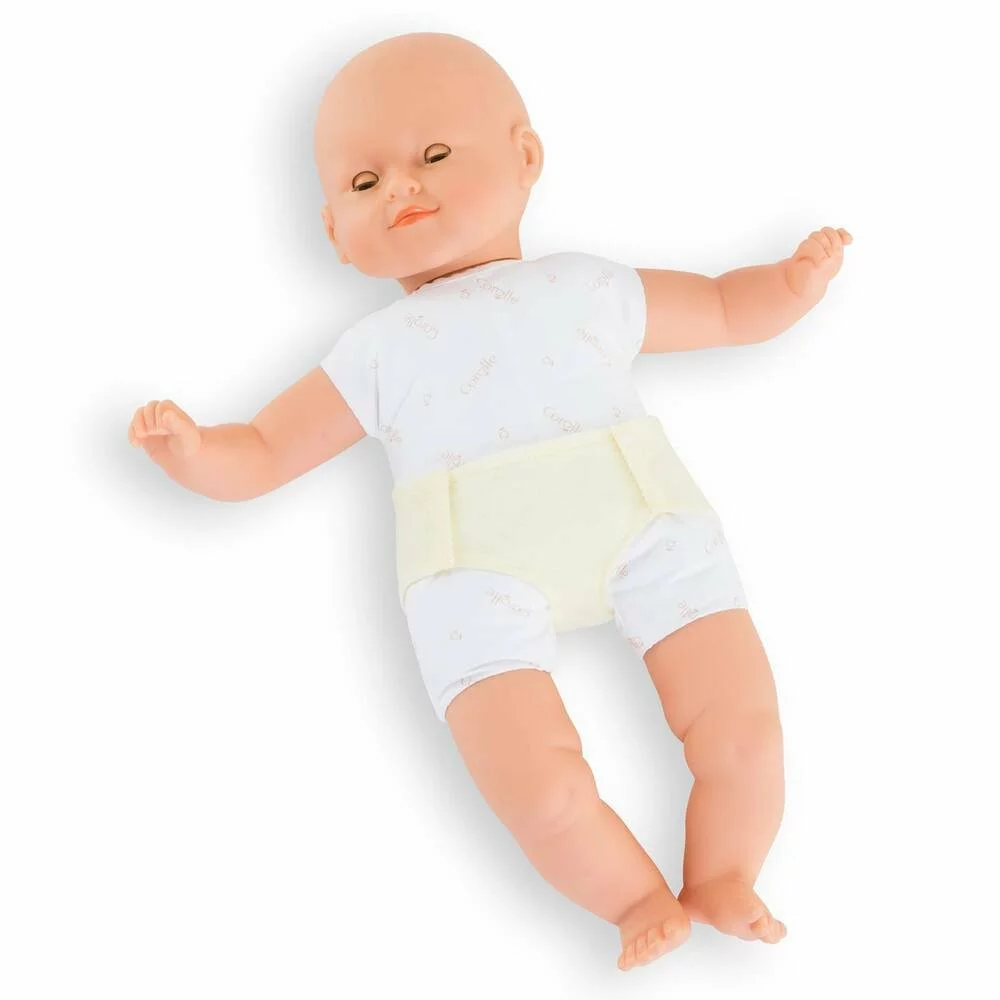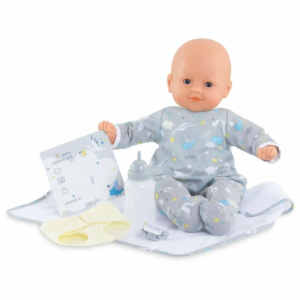 Le Coffret Nouveau-Né est un coffret avec un grand poupon pour jouer et faire comme les grands. Avec ses quatre accessoires; sa couverture; sa couche repositionnable; son bracelet de naissance; son biberon à remplir accompagnés d’un certificat de naissance bilingue recto verso; le Coffret Nouveau-Né permet aux enfants de rejouer l’arrivée d’un bébé dans la famille ! Le grand poupon Nouveau-Né mesure 36 cm; une taille parfaitement adaptée aux petits bras de l’enfant pour le câliner; le materner et imiter les gestes qui font devenir grand. Son visage; ses bras et ses jambes; à la délicate senteur de vanille; sont en vinyle doux au toucher. Son corps est souple pour faciliter ses mouvements. Avec ses yeux dormeurs; il fait dodo quand on le couche sur le dos.Il est habillé d’un pyjama à motifs.