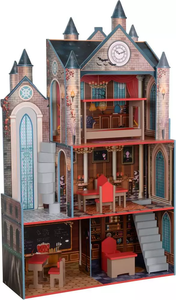 Le manoir des sorciers de Sidj est une maison de poupées. Ce jouet mesure 81 cm de long pour une largeur de 29 cm et une hauteur de 137 cm. Les décors évoquent l’école de magie d’un sorcier célèbre que les enfants adorent. La maison de poupées comporte 3 niveaux. Au rez-de-chaussée, il y a une salle de classe et une bibliothèque. Un escalier mène au premier étage et à la salle à manger. La chambre est au dernier étage. Des passages secrets permettent de passer d’une salle à une autre. Parmi les accessoires, les enfants découvrent un lit à baldaquin, 1 table, 2 bureaux et des sièges. C’est une maison qui peut accueillir toutes sortes de figurines et de poupées interactives.