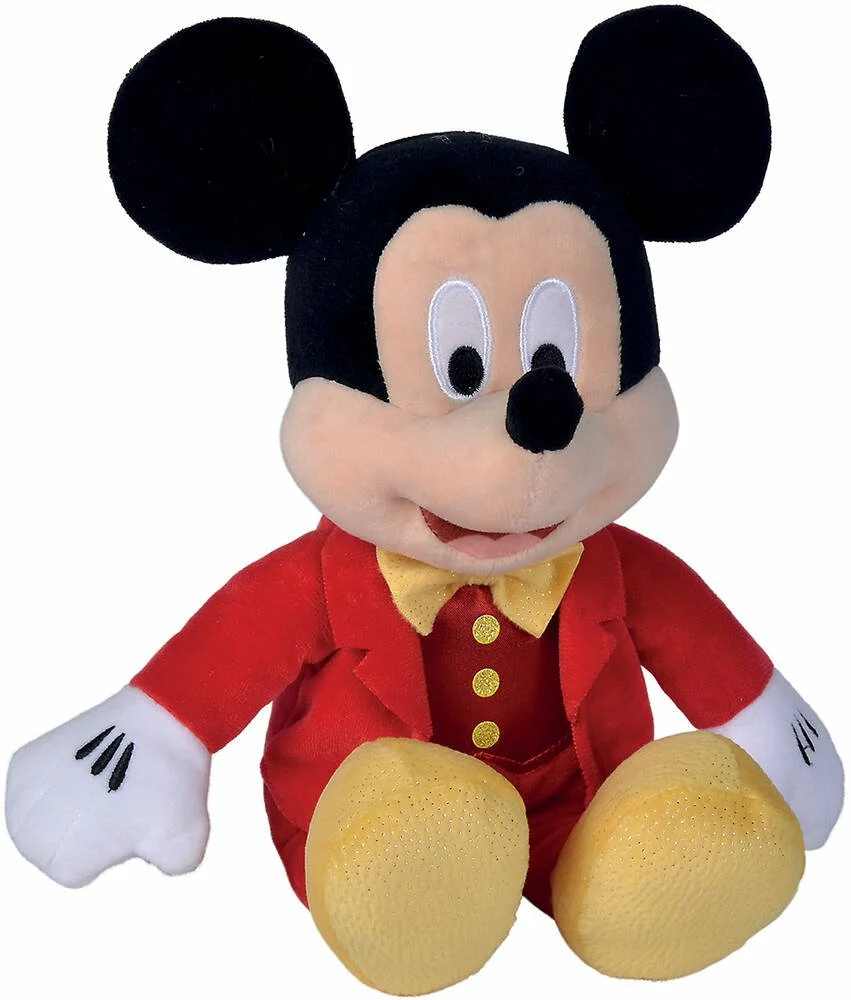 Peluche Disney Mickey de 25 cm. Mickey, la célèbre souris porte une élégante tenue rouge.