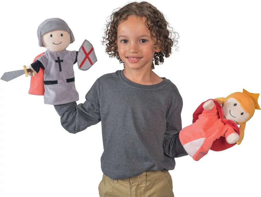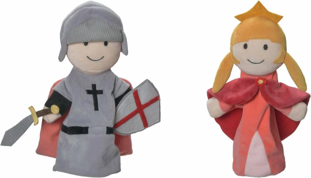 Set de 2 marionnettes. 2 modèles assortis : le dinosaure et le chevalier, ou, la licorne et la princesse. Hauteur d’une marionnette : 25.4 cm environ. Lavable à la main, la température de l’eau ne doit pas dépasser 30°, l’eau froide est recommandée. Matières : PP, coton, nylon. Intérêts éducatifs pour l’enfant : développe l’imagination, favorise l’expression des sentiments et des émotions.