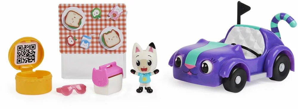 L’univers magique de Gabby et de ses adorables amis les chats. Monte à bord de la voiture de Chabriolette avec Pandy Pattes pour revivre les scènes du dessin animé. 1 figurine de chat et 4 accessoires : 1 paire de lunettes de soleil, un panier, une nappe et une boîte. Une application gratuite à télécharger grâce au QR code inclus pour poursuivre l’expérience de jeu.