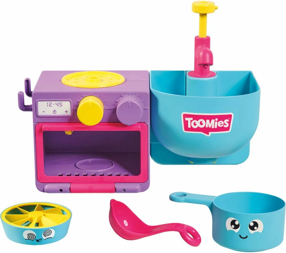 Pour cuisiner dans le bain et faire comme les grands ! Se compose d’1 Four, d’un 1 Evier, d’1 Casserole à Bulles, d’1 cuillère verseuse et d’1 Tarte tournante. Se ventouse à la paroi de la baignoire ou sur le carrelage.