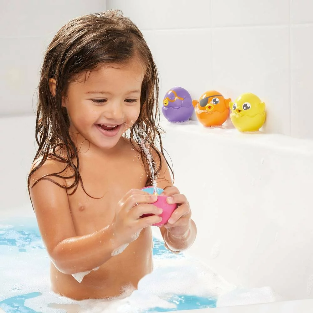 4 petits poussins trop mignons qui n’ont qu’une envie : s’arroser dans le bain ! Fonction gicleur et pouet-pouet rigolo à découvrir !